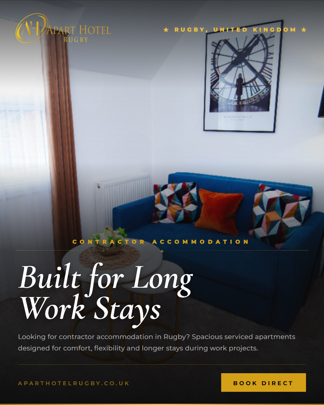 For booking or inquiries, don’t hesitate to call us at +447868781112, or check availability on aparthotelrugby.co.uk.